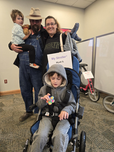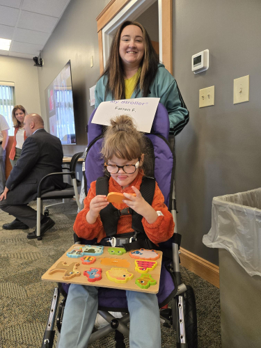 Wyatt and Farren, two students from J. Andrew Morrow Primary School in Towanda, were all smiles as they received adaptive strollers and immediately settled into their new mode of transportation.