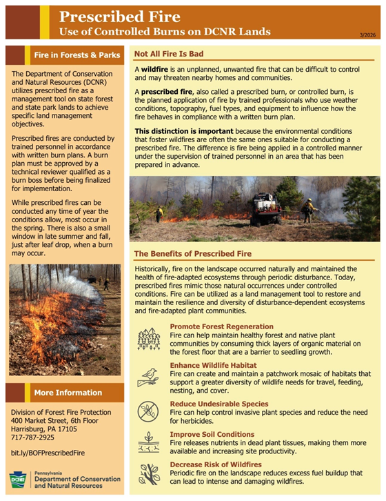 Click below for a guide to help safeguard Pennsylvania’s natural beauty and resources, along with information about prescribed burns.