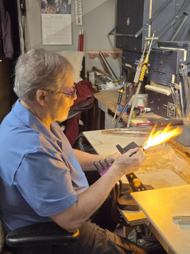 What a treat to visit Edward Hammond of E.M. Hammond Designs in Troy last week and celebrate 50 years of hand blowing and sculpting glass. Ed began in 1975 and was taught by “Wilbur Scientific” but has been teaching himself throughout the years and has developed a remarkable mastery of the craft. It was fascinating watching Ed work. Ed works with both hard and soft glass and uses different flame techniques, including freehand, spun, blown and solid glass methods. It is always so inspiring to see such craftmanship from our area. Ed’s one-of-a-kind pieces are treasured around the world and can be special ordered. Ed also loves to share his knowledge and enjoys teaching students how to create and expand their imagination in glass art. It is a golden opportunity to celebrate a true master craftsman and five decades of creativity and artistry. Here’s to many more years of inspiration! Click here to learn more about Ed’s work.