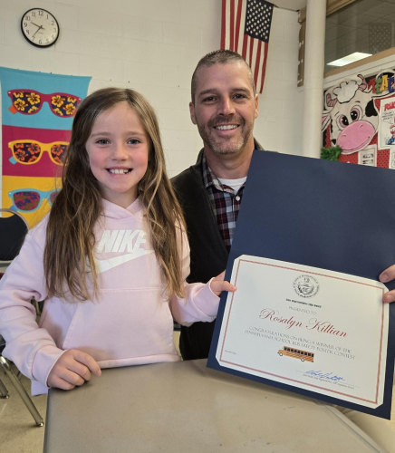 It was a fun morning stopping by Troy Intermediate School to congratulate Rosalyn Killian for being selected as a winner in the Pennsylvania School Bus Safety Contest! Mrs. Lawrence, art teacher at W.R. Croman Primary School , encouraged her students to take part, and Rosalyn’s artwork went on to place third in the State for Division 1 of the School Bus Safety Poster Contest through the Pennsylvania Department of Transportation. I love seeing students in our area use their talent and creativity to get involved and help spread the message about safety first.